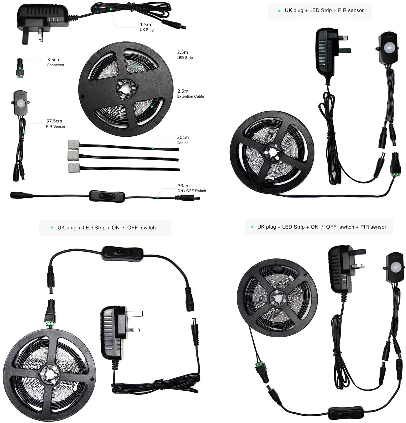 Rayzeek 可调光PIR人体感应LED灯带,带英国适配器,2.5米冷白光