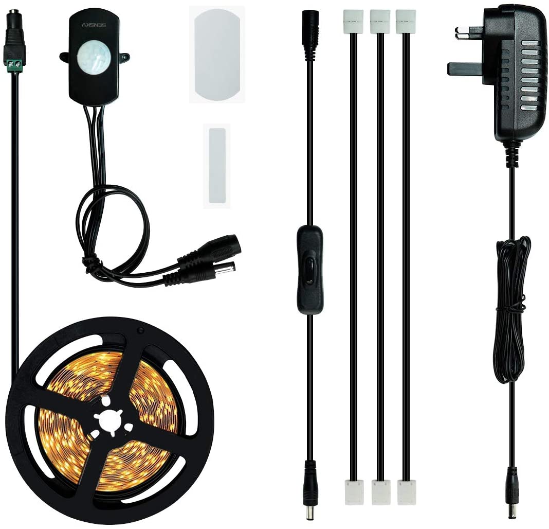 Sensky LED人体感应灯带配备超亮暖白色温,可剪裁且可连接的铜板,特别适合橱柜下灯、门框灯。也可用作床头灯、衣柜灯等。现在就DIY你喜欢的风格。最大长度2.5米。