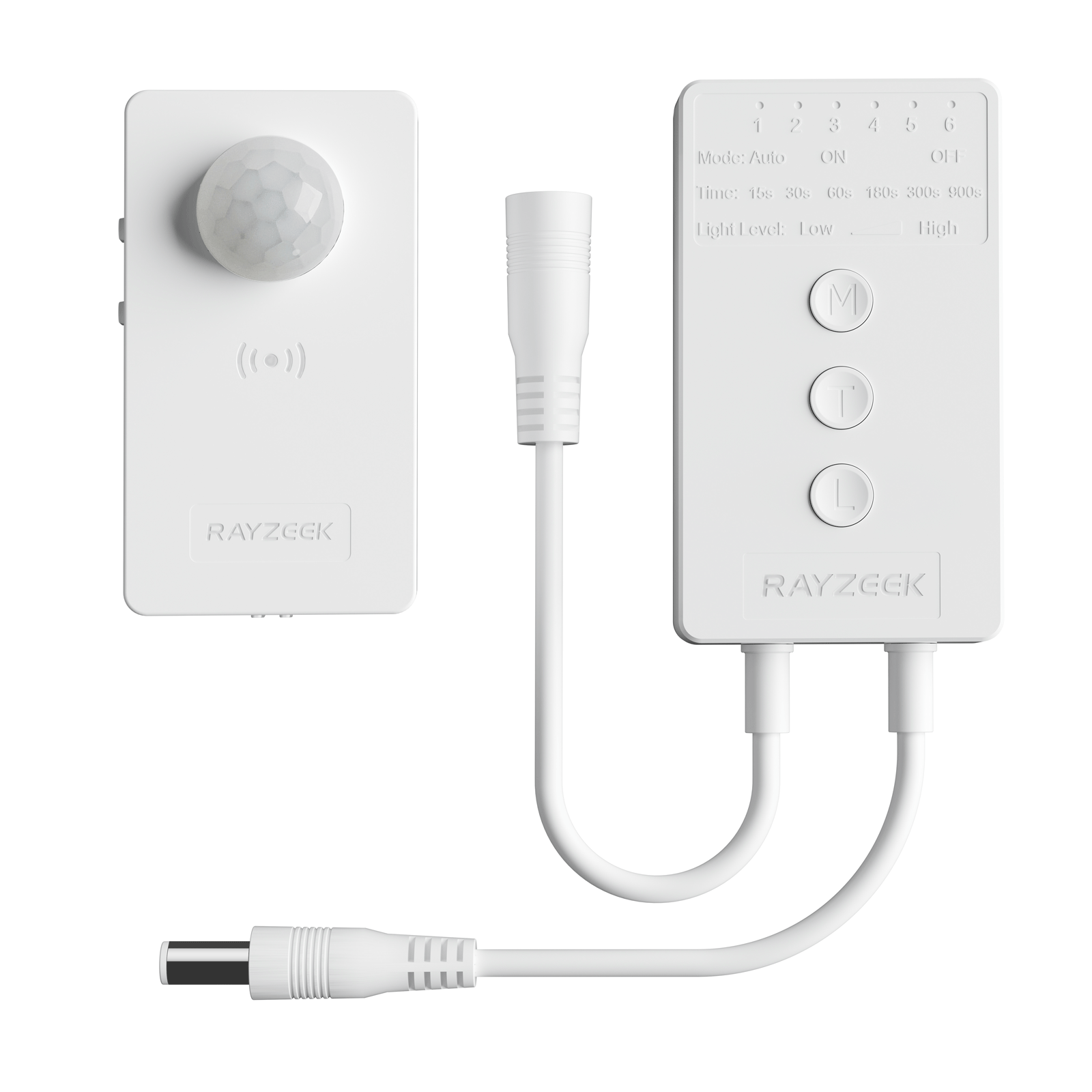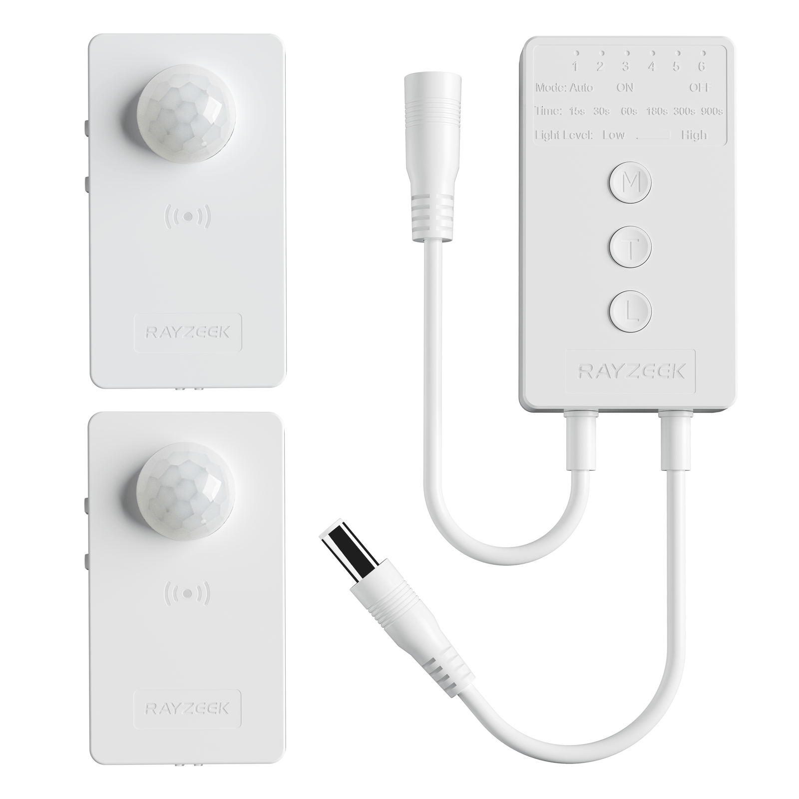 The Rayzeek RZ016 Motion Sensor Switch Kit is the easiest way to add automated, hands-free lighting to your space. This versatile system includes the RZ016A controller and one or more RZ016W wireless motion sensors, designed to work seamlessly with any DC 12V or 24V LED light strips. Choose the standard kit with one sensor or the expanded kit with two sensors to fit your needs.