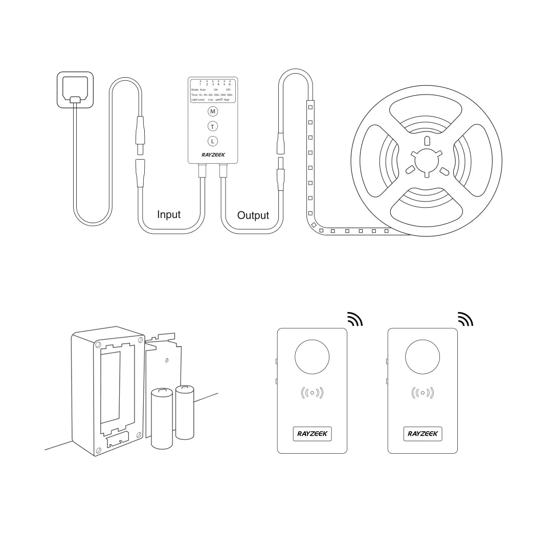 Installation is incredibly simple. The controller plugs in between your power supply and your light strip, replacing any existing inline switch. The sensor is powered by two AAA batteries and is pre-paired from the factory, so it works right out of the box. When a sensor detects your presence, it sends a wireless signal to the controller to turn the lights on. For more complex setups, the controller's ability to pair with multiple sensors allows for comprehensive multi-point detection. With adjustable modes, time delay, and brightness, the RZ016 kit offers a flexible and user-friendly solution for convenient, energy-saving lighting.